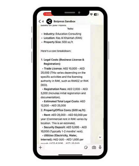 Avneet developed a no-code whatsapp chatbot designed to provide personalized guidance on the costs associated with starting a new business in the Middle East. The chatbot assists with financial planning by simulating various scenarios and generating data-driven forecasts with visual aids like interactive reports and calculators